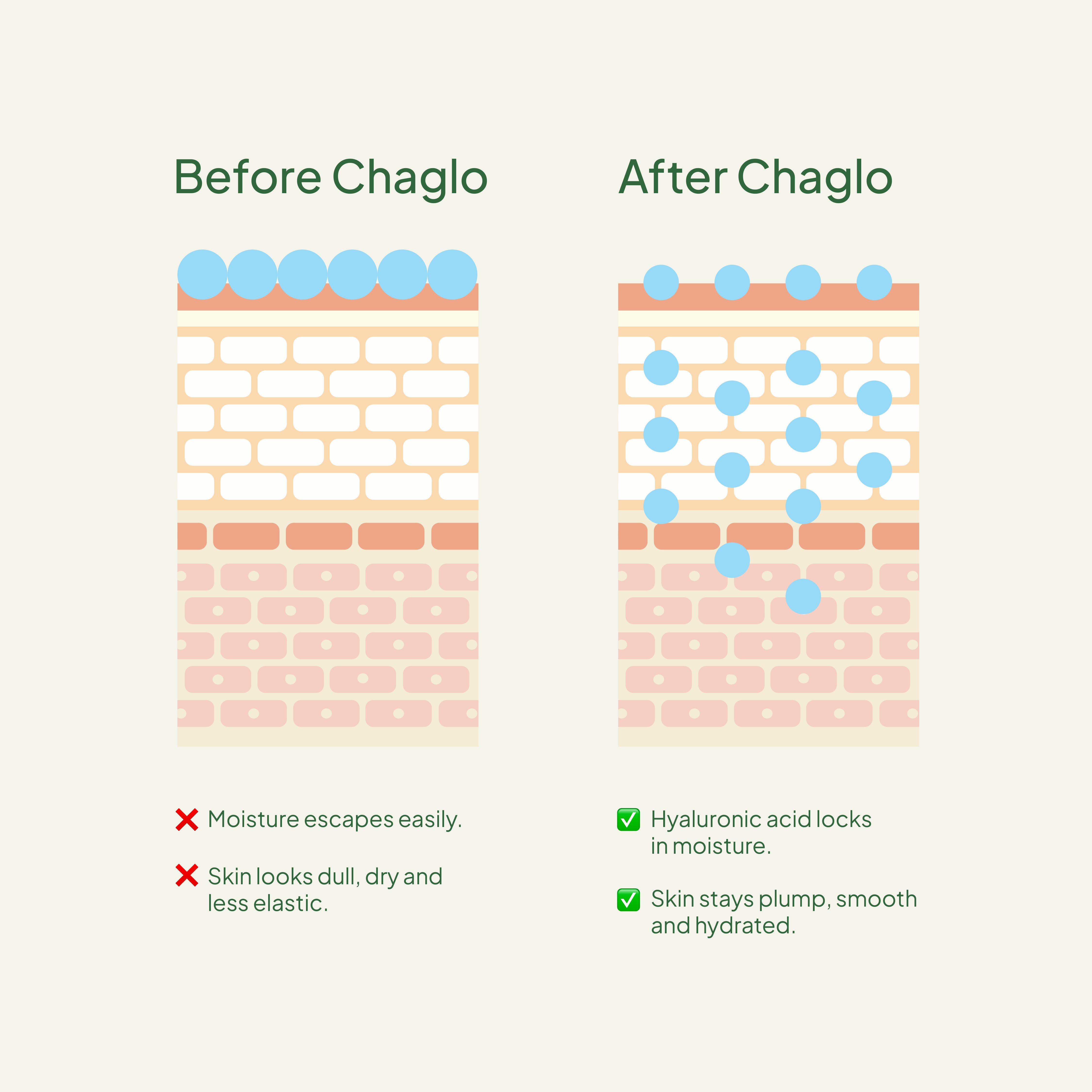 - Chaglo is formulated as a longevity-focused skin elixir, addressing both surface glow and cellular anti-aging.